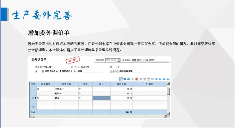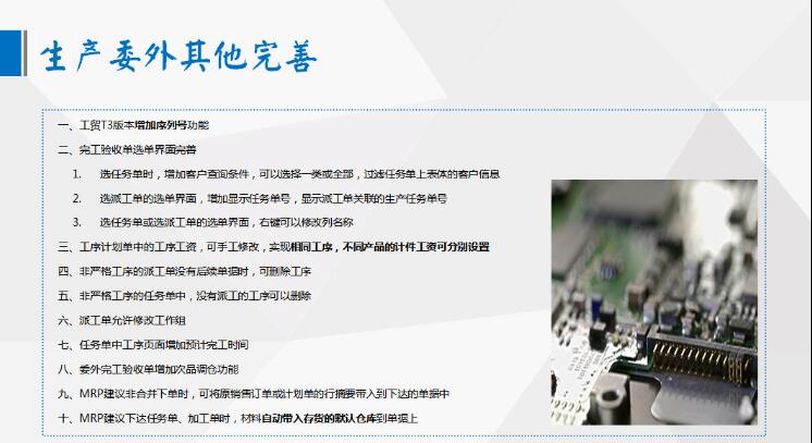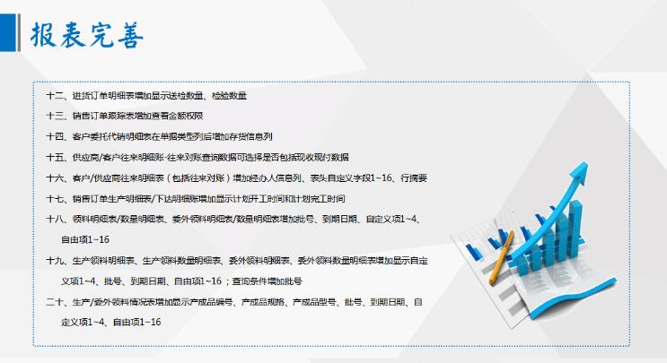 随着中国制造2025的推进,广大中小生产制造企业也需要强化内部管理,以应对日益激烈的市场竞争。15.8针对多项生产制造细节进行完善,例如BOM完善、成本预测完善、完工批号完善等十几项全面完善工作,帮助企业实现管理升级。