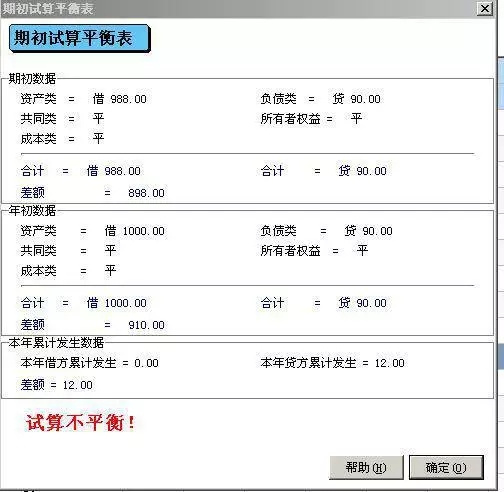 如上年初已经平衡,但是本年累计和期初依然不对;接下来调期初,可以在账务期初报表中浏览一下期初的状况,也可以直接将差额 12 天到权益类的,或者指定的调账类科目的借方即可。