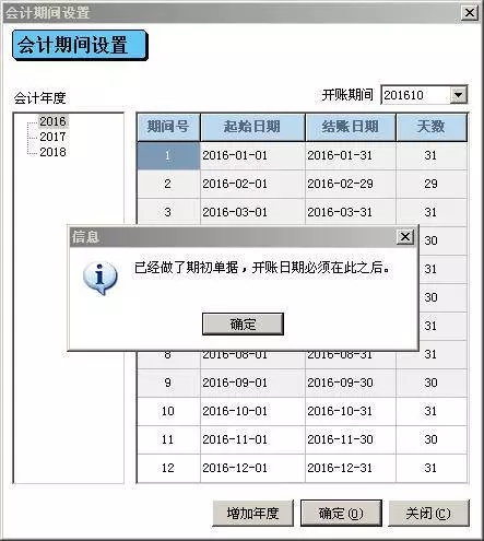 2、将开账期间往后顺延到期初单据日期之后即可。