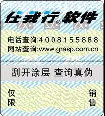 防伪标签贴于任我行软件产品的外包装盒上,刮开该防伪涂层,可见一串随机数字,拨打4008-155-888电话,一定要拨打“4008-155-888”这个电话,有的假货也做的有防伪标签,但涂层上写的拨打电话是另外的 或登录任我行软件官网http://www.grasp.com.cn输入该数字可验证产品真伪。