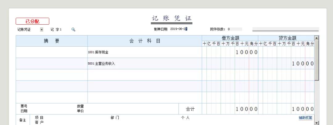 当设定好科目过后,在录入凭证的时候,设计到这些科目的现金或者银行凭证保存,就会自动进行分配如图,凭证上显示“已分配”字样就表示已经做好现金流量分配了,不用再去手工分配啦: