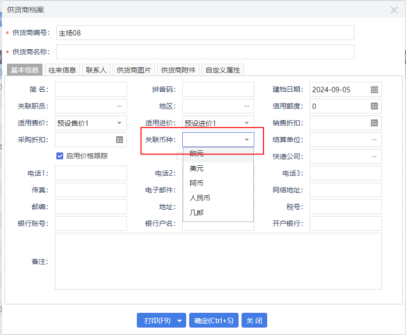 解决方法:客户档案/供货商档案可以设置关联币种。