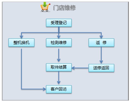 Ø 门店维修:客户将维修品带到维修门店,修好之后再取件结算;