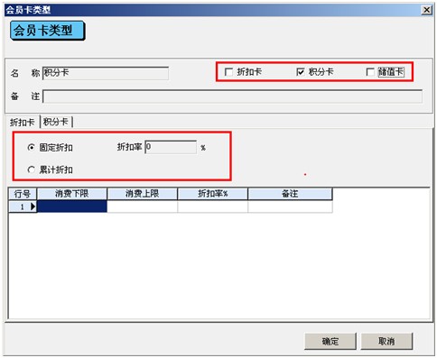 (1) 折扣卡:支持固定折扣和浮动折扣