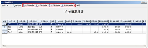 4、 提供会员消费统计、充值统计、积分统计、兑换数据等查询。